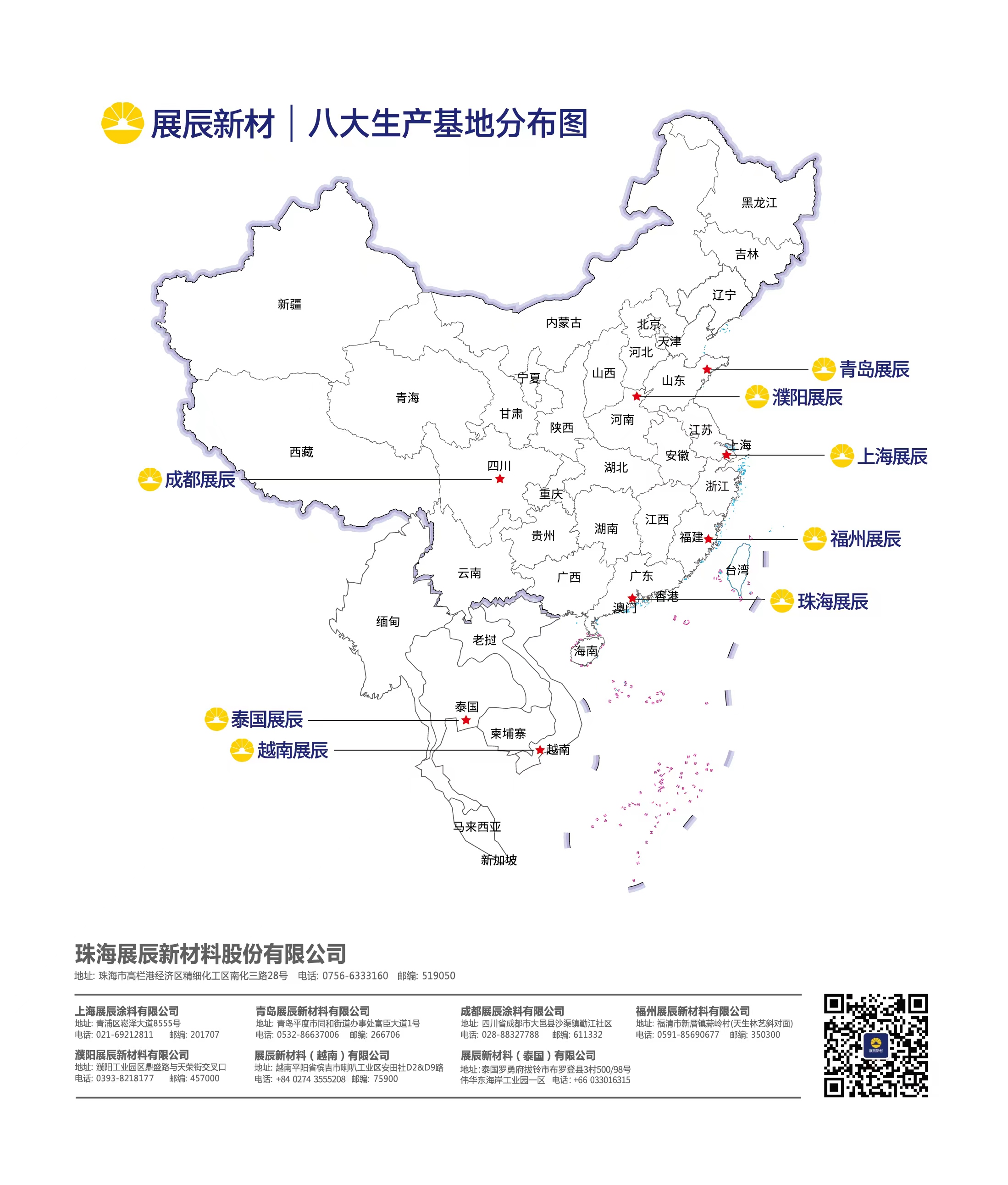 展辰新材料集團股份有限公司是一家集環保涂料研發、生產、銷售和工程施工為一體的國家級高新技術企業,總部位于深圳市,擁有八大生產基地,分設于珠海、上海、青島、成都、福州、濮陽、越南、泰國。經典作為展辰新材的子品牌,是中國涂料行業最具規模化的品牌之一,經典正逐步走向海外,實現國際化。
